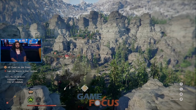 붉은사막의 퀘스트라인 데모는 쇼케이스 마지막에 소개돼 이목을 집중시켰다. 쇼 호스트들은 벌목, 아이템 훔치기 등 오픈월드의 재미 요소뿐만 아니라, 오브젝트의 사실적인 물리효과를 경험했다.