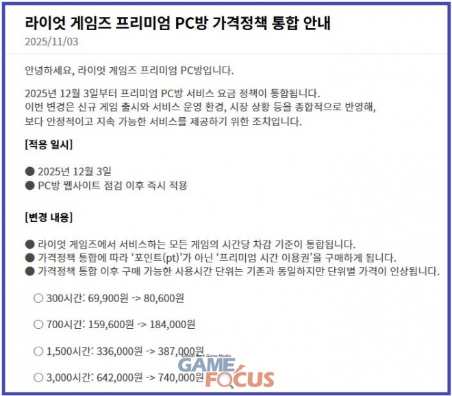 먼저 이번 협의를 통해 2025년 12월 8일부터 약 3개월 동안 과금 시간의 15%를 프리미엄 시간 이용권 형태로 페이백하는 조치가 시행된다. 이를 통해 사실상의 인상 유예 효과가 발생하며, 양측이 3개월 뒤에 다시 협상한다는 계획이다. 이와 함께 라이엇 게임즈 측은 성수기 기간 동안 PC방 이용을 유도하기 위한 방안도 병행할 예정이다.