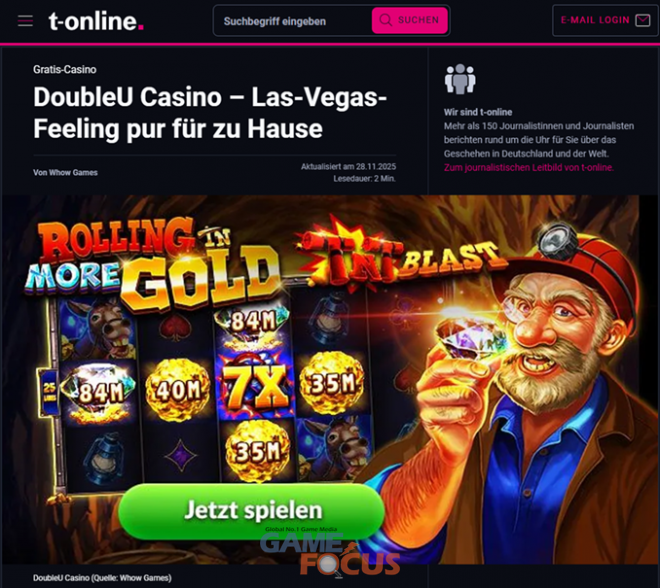 ‘T-Online’은 정치, 경제, 엔터테인먼트 등 다양한 분야의 정보를 제공하는 독일 대표 뉴스 포털 중 하나로 월간 수천만 명의 방문자를 확보하고 있다. 그 중 ‘T-Online Spiele’는 포털 내 게임 전용 서비스 채널로 캐주얼, 슬롯, 카지노 등 다양한 장르를 제공하며 독일 사용자들이 가장 활발하게 이용하는 온라인 게임 플랫폼 중 하나로 꼽힌다.