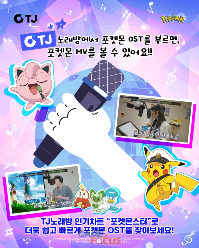 (주)포켓몬코리아(대표이사 임재범)는 연말연시를 맞아 국내 노래방 업계 1위 기업 TJ미디어(티제이미디어)와 협업해 전국 TJ미디어 노래방 기기에 TV 애니메이션 ‘포켓몬스터’ OST를 추가했다고 3일 밝혔다.
