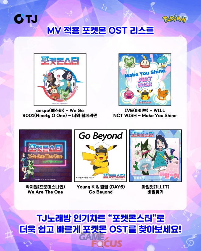 포켓몬코리아는 2023년 8월 론칭한 TV 애니메이션 ‘포켓몬스터: 리코와 로드의 모험’ OST인 에스파(aespa)의 ‘We Go’를 시작으로, 아이브(IVE), 엔시티 위시(NCT WISH), 데이식스(DAY6)의 영케이·원필, 아일릿(ILLIT) 등 다양한 K-POP 아티스트와의 협업을 이어왔다.