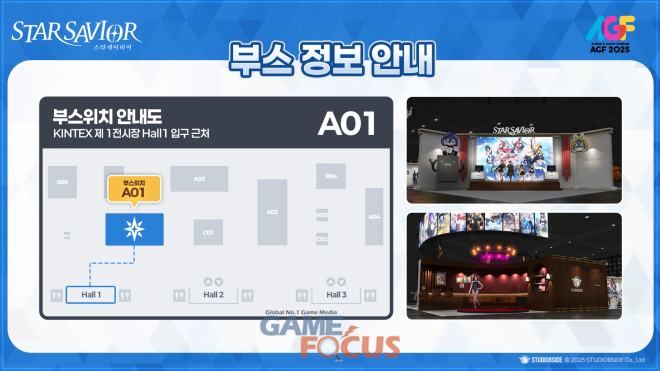 (주)스튜디오비사이드(대표 류금태)는 자사가 개발하고 서비스하는 신작 모바일 게임 '스타세이비어’의 'AGF(Anime X Game Festival) 2025' 부스 조감도와 상세 운영 프로그램을 공개했다.