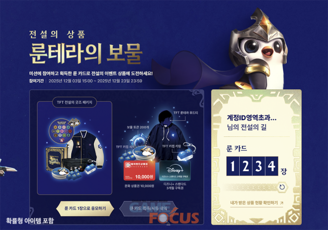 한편, 라이엇 게임즈는 프랑스 파리에서 현지 기준 12월 12일(금)부터 14일(일)까지 총상금 약 4억 5천만 원 규모의 글로벌 토너먼트 ‘TFT 파리 오픈’을 진행한다. 개막을 앞두고 해당 대회에 선수로 출전하는 모델 ‘정혁’과 배우 ‘연우’ 및 인플루언서 ‘팔차선’이 함께하는 ‘룬테라 원정대’ 등 다양한 콘텐츠를 순차적으로 선보일 예정이다.