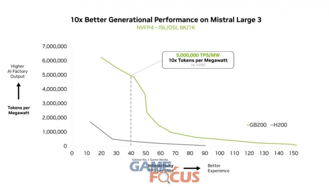 미스트랄 라지 3은 GB200 NVL72에서 이전 세대 H200 대비 10배의 성능 향상을 달성했다. 이러한 세대 간 성능 향상은 이 새로운 MoE 모델에 대해 더 나은 사용자 경험, 토큰당 비용 절감, 높은 에너지 효율성으로 이어진다.