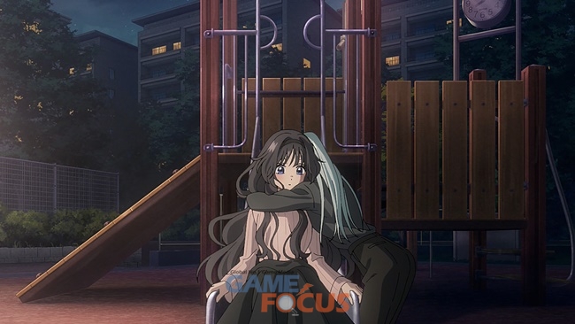 2화 '치도리와 키쿄' : 카오루코가 어두운 표정으로 걸어가다 교문 앞에서 기다리던 린타로를 보고 놀라는 장면(18:31-21:30)