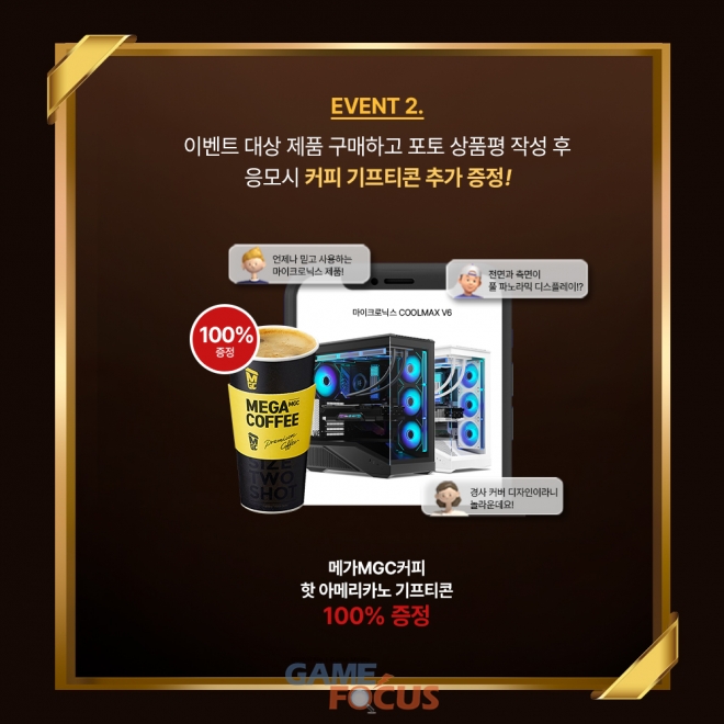 행사 기간 중 이벤트 대상 제품을 구매하고 인증을 완료한 고객에게는 메가MGC커피 핫 아메리카노 기프티콘이 100% 증정된다. 여기에 더해 구매 인증 후 포토 상품평을 작성하고 이벤트에 응모한 경우, 커피 기프티콘이 추가로 제공돼 실제 구매 만족도를 공유한 소비자에게 더 큰 혜택이 돌아간다.