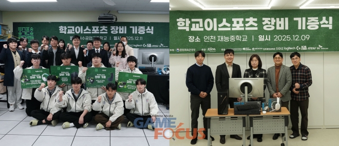 장비 기증 학교로는 재능중학교(인천 동구), 목포영화중학교(전남 목포), 여수공업고등학교(전남 여수) 총 3개교가 최종 선발됐다. 재능중학교는 기증받은 장비를 활용해 이스포츠 관련 창의적 체험활동과 자율 동아리를 개설하고, 교내 및 지역 연계 이스포츠 대회 개최 등 저변 확대 활동을 추진할 계획이다. 목포영화중학교는 정규 교육과정과 방과후·동아리 수업에서 장비를 활용하며, 교내 리그 및 상시 대회 운영을 목표로 하고 있다. 여수공업고등학교는 이스포츠부 학생선수 대회 활동을 지원하고 교내 학생 대회와 시 단위 대회 개최, 종목별 학생선수 모집 등 학교 및 지역 기반의 다양한 이스포츠 활동을 추진할 계획이라고 밝혀 최종 선정됐다.