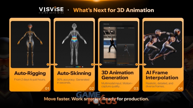 쩡 수석 AI 연구원은 해당 발표에서 다양한 캐릭터 유형의 리그(Rigs)를 생성할 수 있는 업계 최초의 대규모 스켈레톤 생성 모델인 ‘비스바이스 스켈레톤젠(SkeletonGen) V1.0과 90% 이상의 원클릭 AI 스키닝 자동화율을 자랑하는 ‘비스바이스 스키닝 모델(Skinning Model) V4.5’를 소개했다.