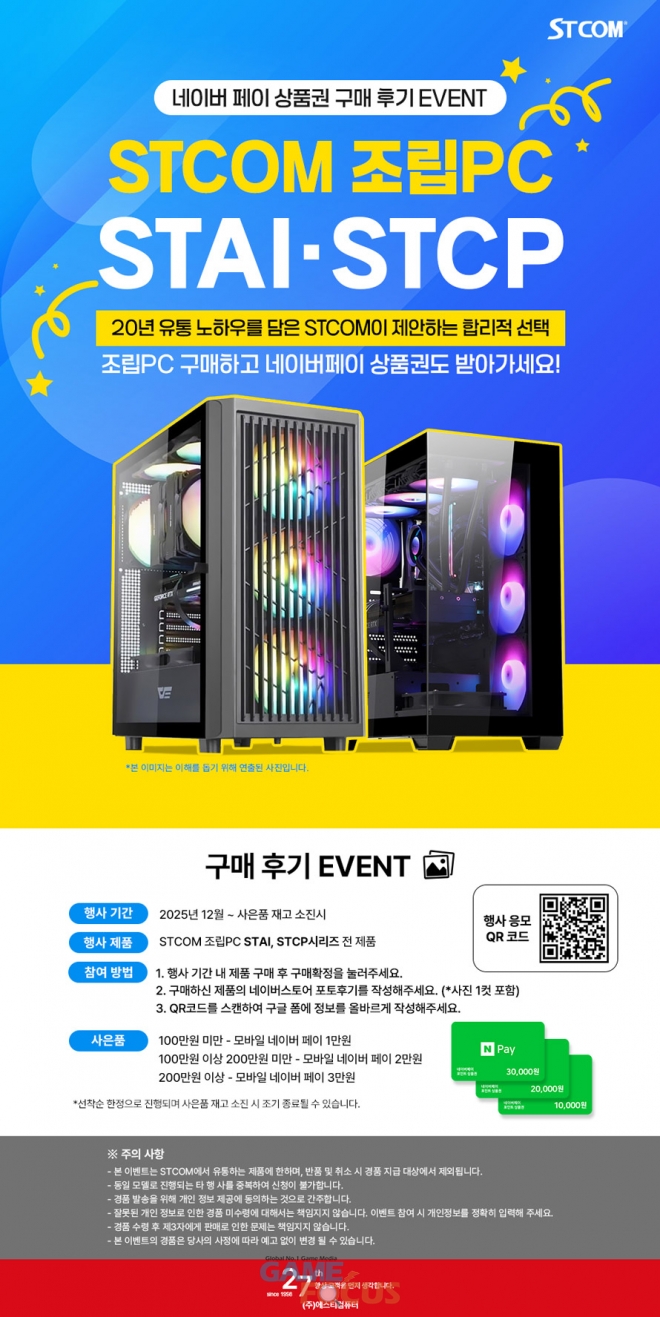 (주)에스티컴퓨터 (대표: 서희문, 이하 STCOM)는 STCOM 공식 네이버 스마트스토어에서 조립 PC를 구매 후 후기를 작성하면 사은품을 증정하는 이벤트를 진행한다.