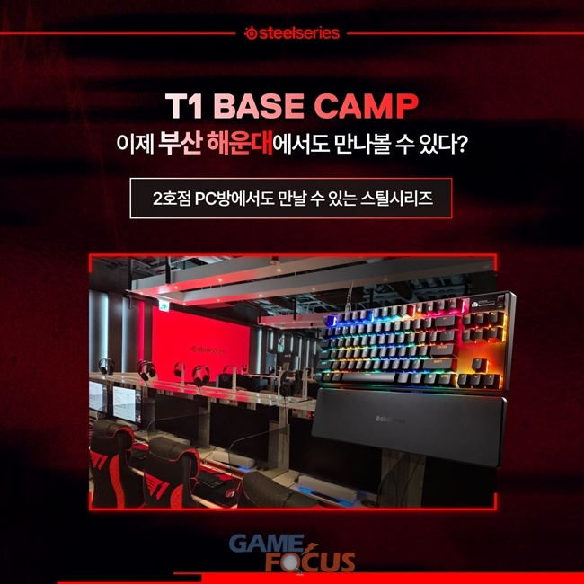 스틸시리즈는 소비자 체험 확대의 목적으로 T1 베이스캠프 부산점과 콜라보를 진행한다. 프리미엄 좌석에 '아크티스 노바 프로(Arctis Nova Pro)' 유선 게이밍 헤드셋과 '에이펙스 프로(Apex Pro) TKL Gen 3' 게이밍 키보드, 일반 좌석에 '아크티스 노바(Arctis Nova) 3' 게이밍 헤드셋, '에이펙스 9(Apex 9) TKL' 게이밍 키보드 및 '에이펙스 7(Apex 7) TKL' 게이밍 키보드를 설치하여 스틸시리즈의 프리미엄 게이밍 기어를 이용할 수 있는 좌석을 마련한다.