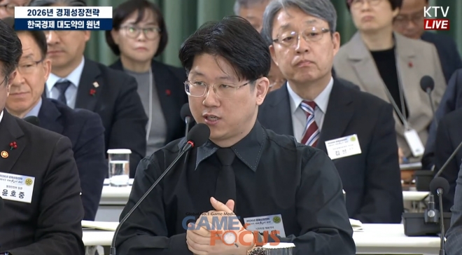 시프트업 김형태 대표가 9일, 이재명 대통령 주재로 진행된 ‘2026년 경제성장전략 국민보고회’ 현장에 참석해 게임업계에 대한 관심을 주문했다.