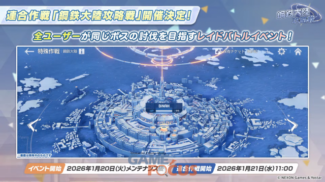 이외에도 5주년을 기념한 무료 100회 모집이 지원되고, 신규 공격 및 방어 속성인 분해와 복합장갑이 추가된다. 또 과거 진행됐던 '거짓된 성소 공략전(F.SCT)' 형태의 신규 연합작전 이벤트 '강철대륙 공략전'도 공개됐다.