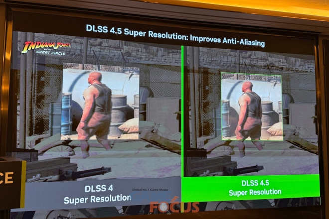 이번 CES 2026에서 엔비디아는 보다 향상된 성능을 지닌 DLSS 4.5 버전을 발표했다. DLSS 4.5는 2세대 트랜스포머 슈퍼 레졸루션과 다이나믹 멀티 프레임 생성 기술 등 두 가지를 골자로 하며, 8년 전 첫 발표 이후 지속된 훈련 루프를 통해 전 세대 대비 컴퓨팅 파워가 향상되고 안티 앨리어싱 개선 및 고스팅 현상 개선이 이루어지면서 퀄리티가 대폭 상승했다는 설명이다.