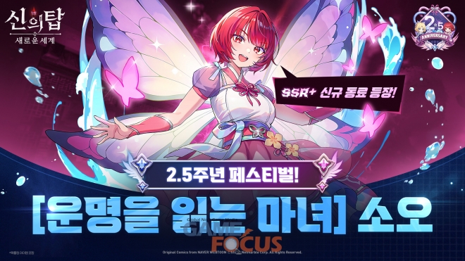 넷마블(대표 김병규)은 모바일 RPG <신의 탑: 새로운 세계>(개발사 넷마블엔투)의 출시 2.5주년을 맞아 신규 SSR+ 동료 ‘[운명을 읽는 마녀] 소오’를 업데이트하고, 다양한 기념 이벤트를 실시한다고 21일 밝혔다.