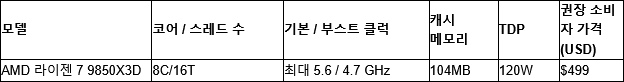 AMD는 자사의 차세대 데스크톱 프로세서인 AMD 라이젠(Ryzen) 7 9850X3D를 1월 29일부터 499달러로 판매할 예정이라고 발표했다.