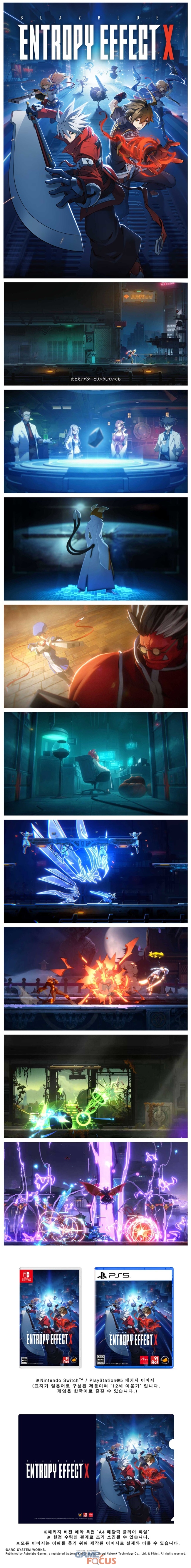 게임 퍼블리셔 '코멧소프트'가 Astrolabe Games와 협력하여 'BLAZBLUE ENTROPY EFFECT X'(블레이블루 엔트로피 이펙트 X)의 한국어 패키지 버전을 Nintendo Switch와 PlayStation5로 발매한다고 발표하는 한편, 1월 27일부터 예약판매를 개시했다.