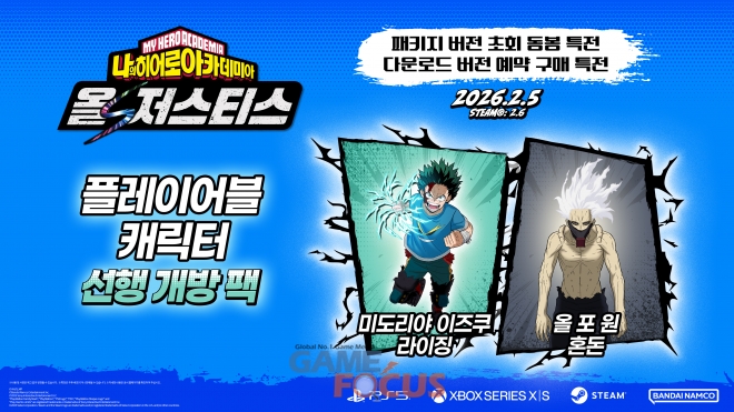 반다이남코 엔터테인먼트 코리아(지사장 장태근)는 PlayStation®5용 '나의 히어로 아카데미아 올즈 저스티스'(한국어판)의 패키지 선주문 판매를 2026년 1월 29일(목) 시작한다고 발표했다.