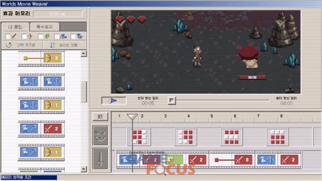고전 OS인 윈도우 98의 UI를 가진 영상 편집 툴을 이용해 ‘이동’, ‘근접 공격’, ‘원거리 공격’, ‘방어’ 클립을 8틱 타임라인에 배치해 액션 시퀀스를 만들 수 있으며 전투 장면을 VFX를 이용해 더 화려라고 강력하게 연출할 수 있다.