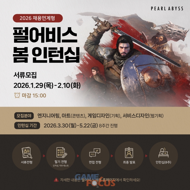 펄어비스가 2026년 채용연계형 봄 인턴십 모집을 29일부터 시작한다.
