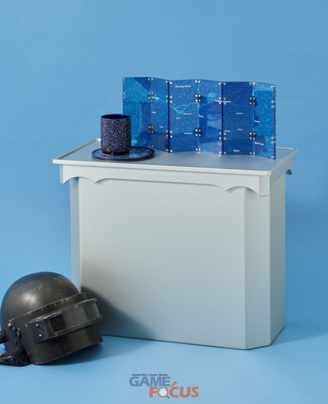 슈퍼포지션과의 협업에서는 배틀그라운드 게임 내 상징적인 공간인 ‘블루존’을 한국 전통 자개에서 착안한 ‘디지털 자개’ 개념으로 재해석했다. 게임 속에서 긴장과 전략을 상징하는 블루존을 병풍이라는 전통 오브제로 구현해, 디지털 세계의 이미지를 오프라인 예술 작품으로 시각화했다. 주요 상품으로는 ‘펍지 블루존 병풍’과 ‘블루존 오브젝트 컵·접시 세트’가 있다.