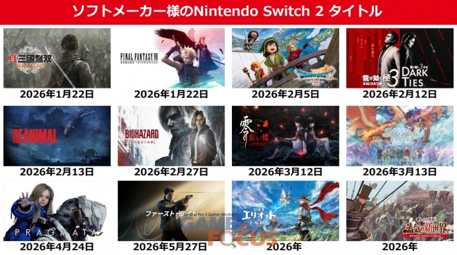 닌텐도는 올해 닌텐도 스위치2 유저들이 손꼽아 기다린 대작 타이틀을 순차적으로 발매하며 상승세를 이어나간다는 계획이다. 닌텐도 스위치 최고의 타이틀이자 핵심 라인업으로 자리잡은 ‘동물의 숲’, ‘마리오’, 시리즈의 신규 버전 외에도 ‘파이널 판타지’, ‘용과 같이3’, ‘드래곤 퀘스트7’ , ‘바이오 하자드 레퀴엠’, ‘프라그마타’, 등 다양한 장르의 신작을 통해 이용자층을 더욱 확대한다는 계획이다.