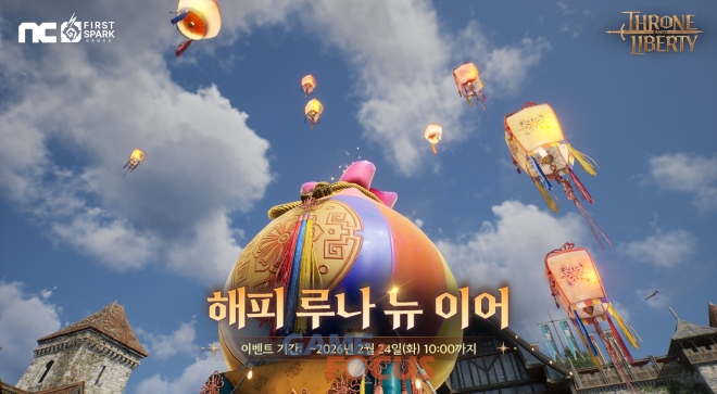 ▲‘THRONE AND LIBERTY(쓰론 앤 리버티, 이하 TL)’는 2월 24일까지 ‘해피 루나 뉴 이어!’ 이벤트를 진행한다. 이용자는 다양한 콘텐츠를 플레이해 모은 ‘새해주화’를 ‘프로필 프레임: 붉은 말의 가호’, ‘칭호: 2026년 행운의 주인공’, ‘감정 표현 모션: 하트 선물’과 다양한 버프 아이템 등으로 바꿀 수 있다. 주요 거점 마을에서 이벤트 NPC, 말 동상과 상호작용하면 ‘하우징 가구’, 게임 내 재화 ‘솔란트’가 담긴 '행운 봉투' 등 추가 보상을 획득한다. 이벤트 기간 누적 접속 및 게임 접속에 따라 선물을 받고, TL 공식 카카오톡 채널을 친구 추가해 쿠폰을 얻을 수 있다.