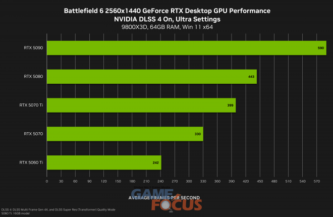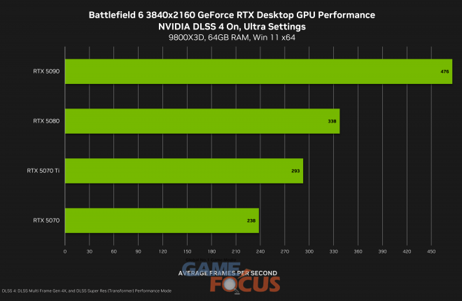 ‘배틀필드 6’는 DLSS 4 멀티 프레임 생성과 엔비디아 리플렉스를 지원해 지포스 RTX 게이머에게 최적의 경험을 제공한다. 4K 해상도 울트라(Ultra) 설정에서 DLSS 4 멀티 프레임 생성과 DLSS 슈퍼 레졸루션(Super Resolution)을 활성화하면 지포스 RTX 50 시리즈의 프레임 속도가 평균 3.8배 향상된다. 덕분에 데스크톱에서는 최대 460 FPS, 지포스 RTX 50 시리즈 노트북 GPU에서는 최대 310 FPS의 플레이가 가능하다.