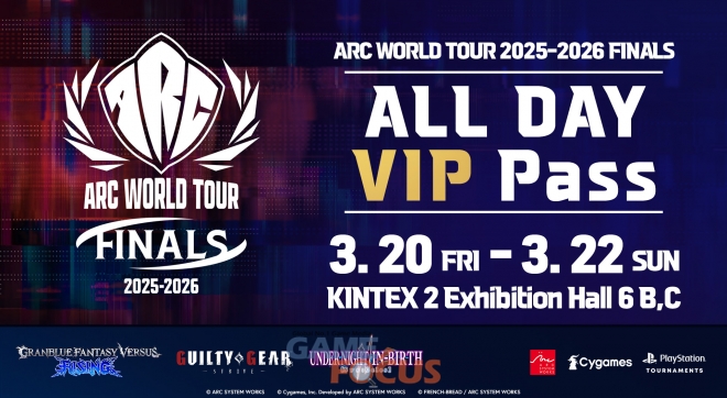 현재 티켓링크를 통해 '아크 월드 투어 2025-2026 파이널'의 ALL DAY VIP Pass를 예매할 수 있다. '길티기어 -스트라이브-'의 주제곡 및 캐릭터 테마송에 보컬로 참여한 보컬 아티스트 'NAOKI'의 첫 내한 라이브 공연 'ARC WORLD TOUR 스페셜 라이브 in KOREA'의 특별 스탠딩 에리어의 선행 입장할 수 있는 우선권을 비롯하여, 파이널 개최를 기념하여 특별 제작되는 기념 굿즈들이 담긴 VIP 웰컴 KIT, 그리고 행사장 내에서 진행되는 각종 이벤트 및 콘텐츠 참가 우대권이 주어지는 ALL DAY VIP Pass의 구매는 행사 종료일인 3월 22일 오후 7시까지 가능하다.