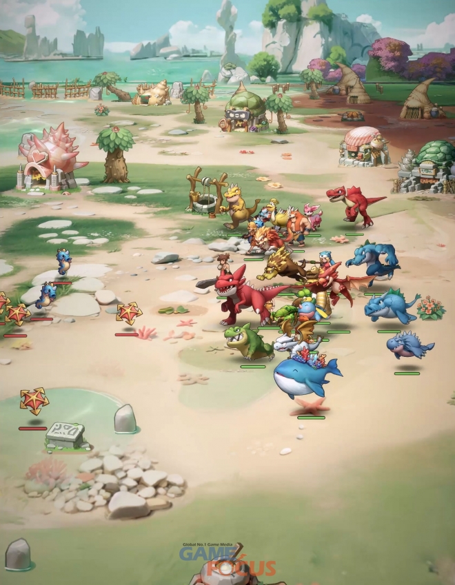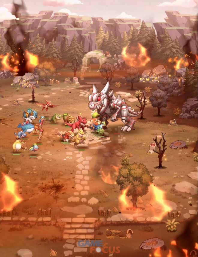 <스톤에이지 키우기>의 특징은 압도적인 규모의 덱 구성이다. 이용자는 6명의 조련사와 18마리의 펫을 배치해 총 24기에 달하는 군단급 덱을 꾸리고 자신만의 전략을 펼칠 수 있다. 특히 원작의 강력한 보스가 등장하는 대규모 레이드 콘텐츠 ‘강림전’은 수많은 펫들이 동시 출전하는 압도적인 스케일의 전투 경험을 제공한다.