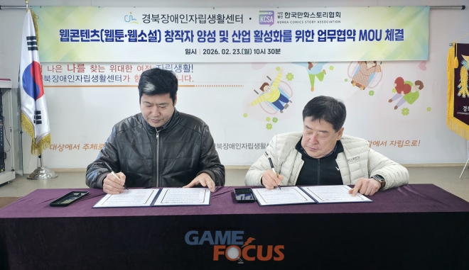 (사)한국만화스토리협회(이하 협회)와 경북장애인자립생활센터(이하 센터)가 지난 23일 장애인 웹콘텐츠(웹툰·웹소설) 작가 양성을 위한 업무협약을 체결했다.