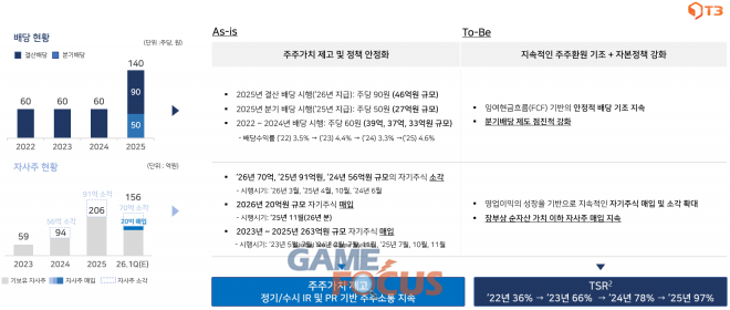 티쓰리는 지난해부터 분기배당 제도를 병행하며 주주환원 정책을 강화해왔다. 배당 규모를 단계적으로 확대하는 동시에 비과세 구조를 통해 주주가 실제로 체감하는 수익 수준을 높이고 있다. 동시에 회사는 올해부터 분기배당을 더욱 강화해 보다 정기적이고 일관된 배당 정책을 운영할 계획이라고 밝혔다.