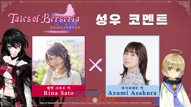 이와 함께 '테일즈 오브 베르세리아'의 벨벳 크라우 역 ‘Rina Sato’과 라이피세트 역 ‘Azumi Asakura’의 코멘트 영상을 공개하였다. 원작 녹음 당시의 추억, 리마스터에 대한 감상 등을 이야기한다.