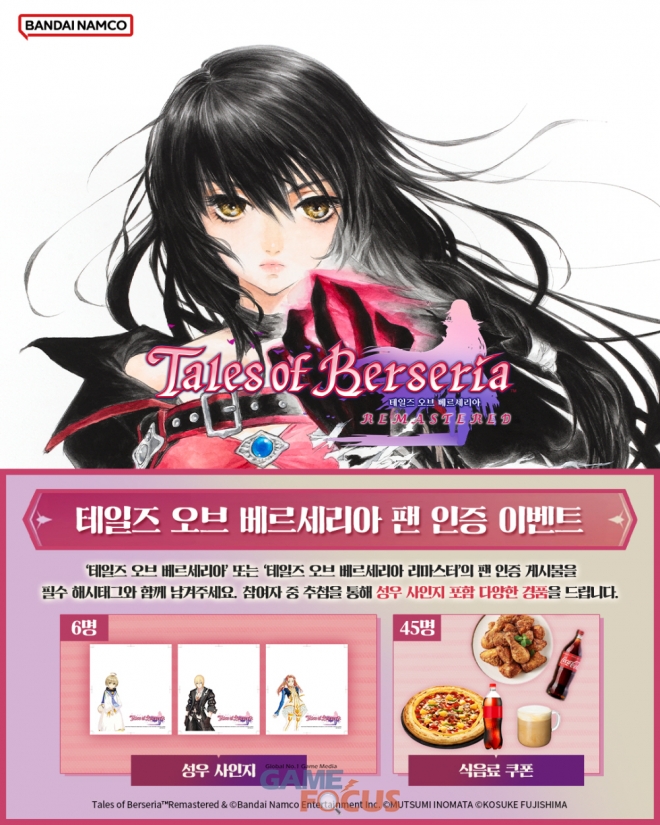 ‘테일즈 오브 베르세리아 리마스터’(한국어판)의 발매를 기념해, 반다이남코 엔터테인먼트 코리아의 X 채널에서 팬 인증 이벤트를 진행한다.