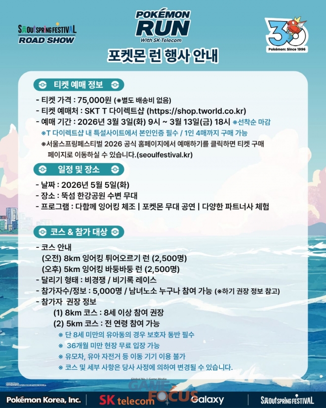 (주)포켓몬코리아(대표 임재범)는 포켓몬 30주년과 어린이날을 기념해 오는 5월 5일 서울 한강 뚝섬공원 일대에서 ‘포켓몬 런 2026 in Seoul’(이하 ‘포켓몬 런’)를 개최한다고 26일 밝혔다.
