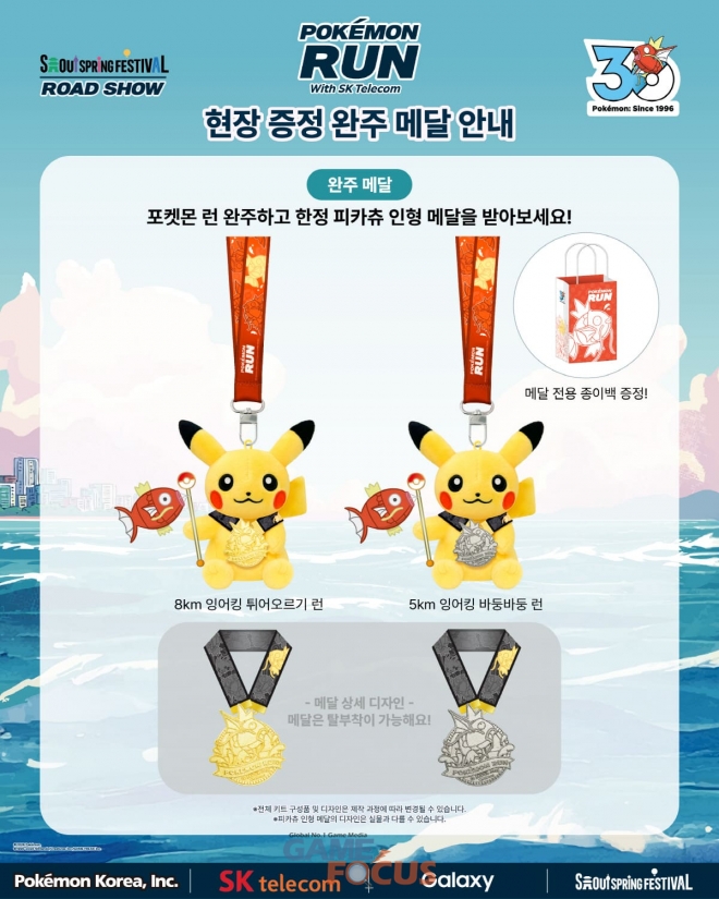 완주자에게는 지난해 제주에서 진행된 ‘포켓몬 런’에서 큰 사랑을 받았던 ‘피카츄 인형 메달’이 잉어킹 콘셉트와 결합된 오리지널 완주 기념품으로 증정된다.