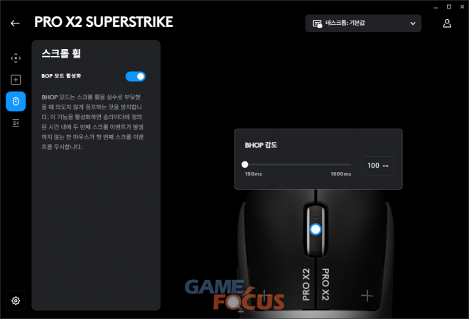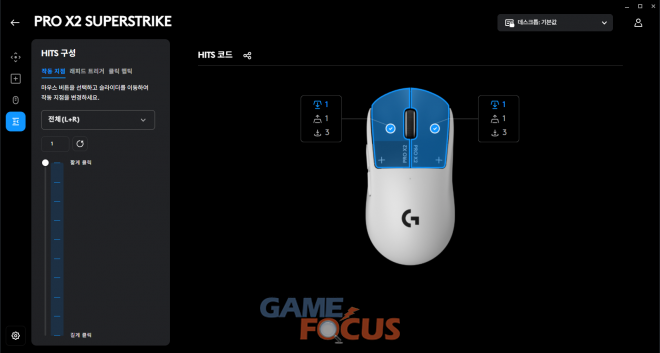개인적으로 가장 인상적이었던 점은 소프트웨어를 통한 ‘클릭감의 개인화’였습니다. 전용 소프트웨어 G HUB를 통해 좌우 클릭의 작동 지점을 좌우 별개로 10단계로 설정하고 래피드 트리거 기능도 5단계로 설정할 수 있습니다. 또 햅틱의 강도도 취향에 따라 조정할 수 있죠. 클릭감 때문에 마우스를 뜯거나 새 마우스를 사며 고생할 필요가 없어진 겁니다. 또 재미있게도 저는 '지슈스'를 쓰면서 평생 우클릭을 훨씬 세게 누르는 습관이 있다는 사실을 처음으로 알게 됐습니다. (물론 이 또한 소프트웨어로 개인 맞춤이 가능하죠.) 소소하게는 휠에 점프를 설정해 둔 슈팅 게임 이용자들을 배려해 BHOP 모드도 제공됩니다. 햅틱도 처음에만 조금 낯설 뿐 금방 적응할 수 있었고요.