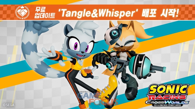 세가퍼블리싱코리아(대표 사이토 고)는 현재 절찬 판매 중인 『소닉 레이싱 크로스월드』의 무료 업데이트 'Tangle & Whisper'가 2026년 2월 26일(목) 오늘부터 배포된다고 밝혔다. Tangle과 Whisper는 IDW 코믹 시리즈 『소닉 더 헤지혹』에 등장하는 소닉의 든든한 동료로, 쾌활한 여우 원숭이와 과묵한 늑대 캐릭터이다.