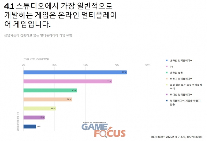 응답자의 83%가 ‘온라인 멀티플레이어 게임’ 구축을 선호하는 것으로 나타났으며, 55%가 게임에서 일반적으로 2~9명의 사용자를 지원한다고 답변했다. 많은 스튜디오가 크로스플레이 기능(72%)을 우선적으로 고려하고, 데일리 리워드 및 미션과 리더보드(각각 78%)를 구현했다고 밝혔다.