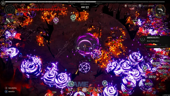 △ 끝없는 적 웨이브: 점점 더 격화되는 전투에서 악마 떼를 상대