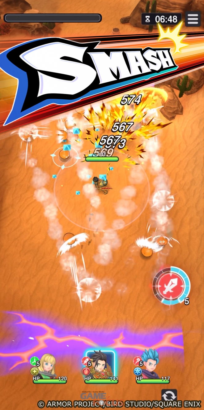 『드래곤 퀘스트 스매시 그로우』는 세로 레이아웃을 특징으로 한 게임으로, 한 손으로도 간편하게 플레이할 수 있는 직관적인 조작 방식을 통해 누구나 손쉽게 즐길 수 있다.