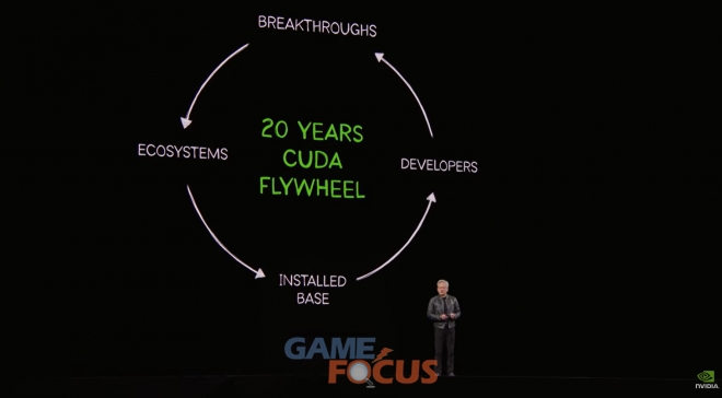 젠슨 황 CEO는 쿠다(CUDA) 출시의 20주년을 기념하고, 이를 가속 컴퓨팅을 이끄는 ‘플라이휠(flywheel)’이자 AI 라이프사이클의 모든 단계를 지원하는 플랫폼이라고 설명했다.