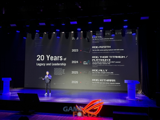 그는 게임을 인류의 상상을 비주얼로 구현하려는 욕망이 만든 첫 번째 가상 현실이라고 정의하며, "에이수스를 비롯해 엔비디아, AMD와 같은 파트너사들은 이 꿈을 위해 컴퓨팅 기술을 폭발적으로 진보시켜 왔으며, 이제 AI의 성장으로 그 결실이 눈앞에 와 있다. 지난 20년간 ROG가 달려온 목표는 가상 세계가 현실과 흡사해지도록 만드는 것이었다. 무한한 가상 현실 세계에서 ROG 게이밍 기어는 사용자들을 가장 빛나게 해줄 '필수 생존 용품'이 될 것"이라는 확신과 함께 앞으로의 여정을 ROG와 함께해달라"고 당부했다.