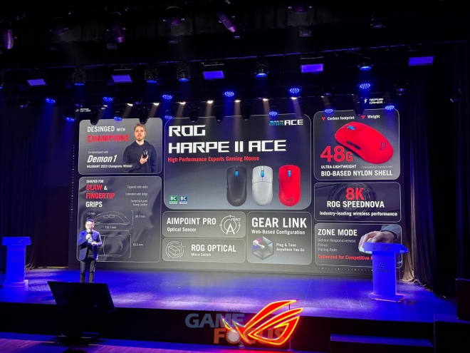 이날 에이수스는 유명 '발로란트' 프로게이머 'Demon 1' 맥스 마자노프와 1년 동안 협업해 제작한 마우스 'ROG HARPE II ACE', 75% 레이아웃과 HE(Hall Effect) 자석축이 적용된 키보드 'ROG FALCHION ACE 75 HE', 96% 레이아웃에 자유로운 키캡 및 스위치 커스터마이징이 강점인 키보드 'ROG STRIX MORPH 96 WIRELESS', 하이파이맨(HIFIMAN)과의 협업으로 탄생한 헤드셋 'ROG KITHARA', 초저지연 2.4Ghz 연결과 오픈이어 디자인 그리고 16시간 연속 사용의 배터리 타임을 자랑하는 이어폰 'ROG CETRA OPEN WIRELESS' 등을 공개했다.
