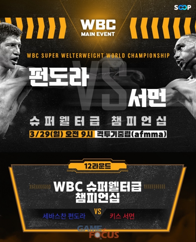 SOOP이 오는 29일(일) 세계 정상급 복싱 대회 WBC 슈퍼웰터급 챔피언십을 생중계한다. 이번 대회는 메인이벤트를 포함해 총 4경기가 진행될 예정이다.
