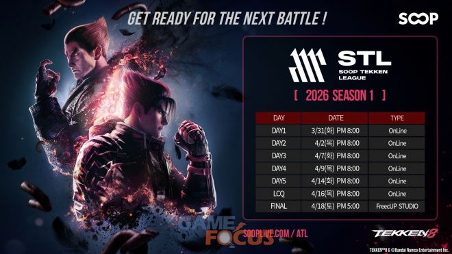 ‘STL(SOOP Tekken League) 시즌1’은 SOOP이 운영하는 철권 프로리그로, 2026년 상반기 철권 e스포츠를 대표하는 주요 대회 중 하나다. 지난해에 이어 올해도 반다이남코 엔터테인먼트 코리아가 공식 후원사로 참여하며, 안정적인 리그 운영과 함께 다양한 지원을 이어간다.