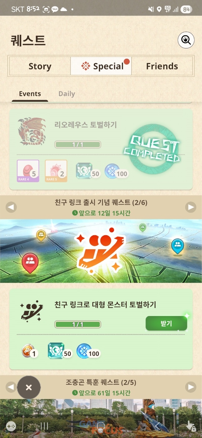 다만 개인적으로 이번 친구 초대 가능 콘텐츠에 메인 스토리가 빠진 것은 다소 아쉽게 느끼고 있다. 초보 입장에서는 필드 몬스터 사냥도 중요하지만 메인 퀘스트를 밀며 헌터 랭크를 높이거나 스토리를 1차로 깨고 메달 수집 등 은근 메인 스토리의 중요도가 높은 편이다. 하지만 메인 스토리는 현재 QR 친구 초대도 막혀있는 상황이라 무조건 솔로 플레이만 가능해 은근 장벽으로 느껴지는 경우도 있어 이 부분을 추후 친구 초대 기능의 확대로 장벽을 낮출 수 있지 않을까 하는 기대를 해본다.