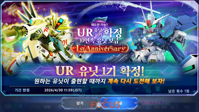 건담 팬들이라면 가슴이 뛸 만한 라인업도 포진했다. 이번 픽업 뽑기에는 UR '윙 건담 제로(EW판)(EX)'와 UR '더블오 라이저(최종결전사양)(EX)' 등 각 시리즈를 상징하는 기체들이 등장한다. 성능뿐만 아니라 화려한 연출까지 갖춘 이 기체들은 내 부대의 전력을 단숨에 끌어올려 줄 핵심 전력이다.