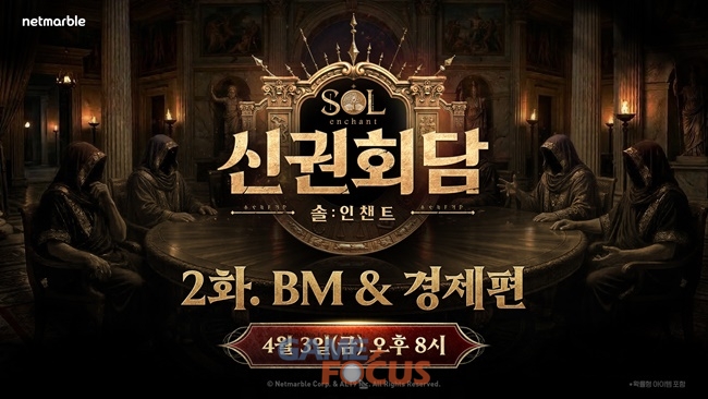 넷마블(대표 김병규)이 2026년 상반기 출시 예정 신작 MMORPG 'SOL: enchant(솔: 인챈트)' 유튜브 라이브 방송 '신권회담 2화'를 3일 오후 8시에 실시한다고 밝혔다.