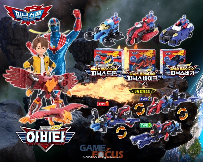 콘텐츠 전문 기업 초이락컨텐츠컴퍼니(대표 최종일, 이하 초이락)가 자사의 새 히어로물 IP인 '피닉스맨'의 주인공의 수호정령 불새 '아비타'와 드론을 포함한 '트라이기어' 완구 3종 세트를 선보인다.