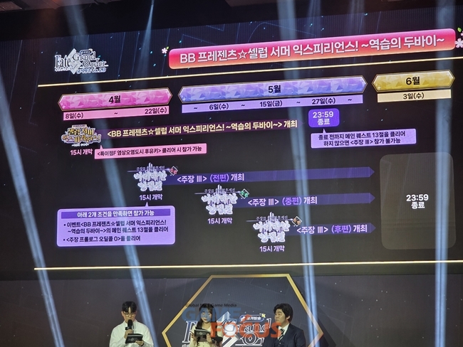 넷마블 이우영 사업 PM은 "유저들과 직접 만나 '페이트/그랜드 오더'의 새로운 소식을 공유할 수 있어 뜻깊은 시간이었다"며 "4월 선보일 신규 시나리오와 이벤트에도 많은 관심과 참여를 부탁드린다"고 말했다.